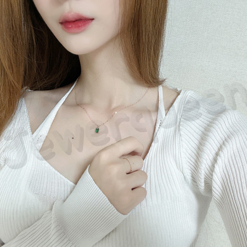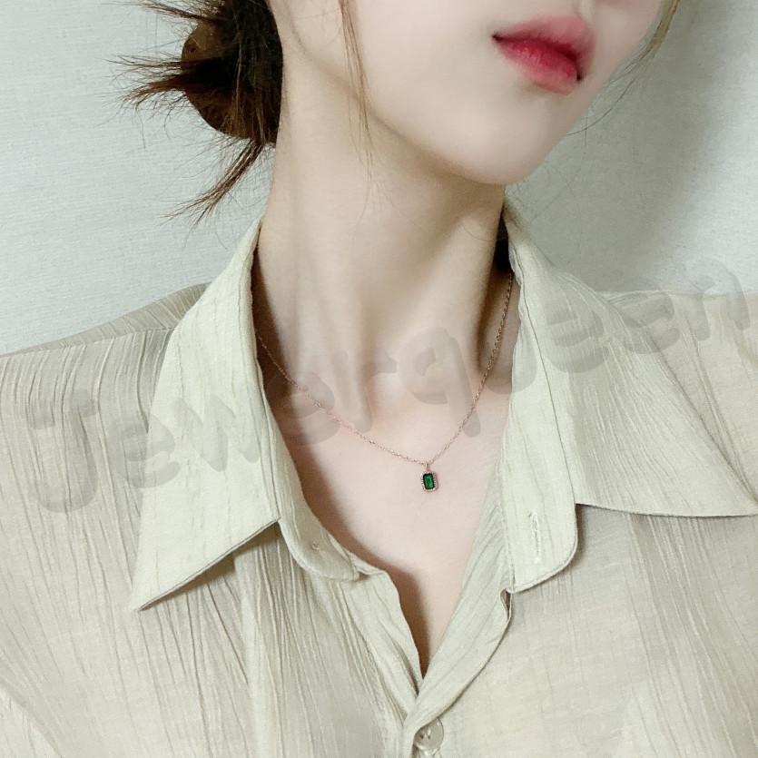 Necklace 여자 목걸이 14k 스퀘어 펜던트 에멜 목걸이